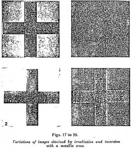 如果承认阴极射线和放射性物体的电粒子会在照相底片上留下印痕,我们可能会把潜象的形成归因于银的明胶溴化物的电离作用。我原先想维持这一假设,但有以下两个事实与之相反:(1)感光底片在曝晒过程中不可能观察到任何放射性;(2)主要作用于照相底片上的蓝光决不是使物质解离的最活跃的因素。